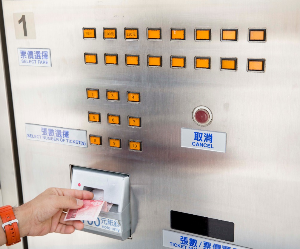 ② 4階の乗り場へ移動。一般のゴンドラか、床が透明のクリスタルキャビンとよばれる水晶車廂のどちらかを選び、改札ゲートを抜けます。