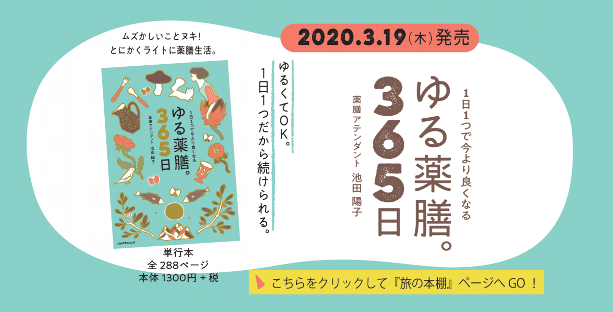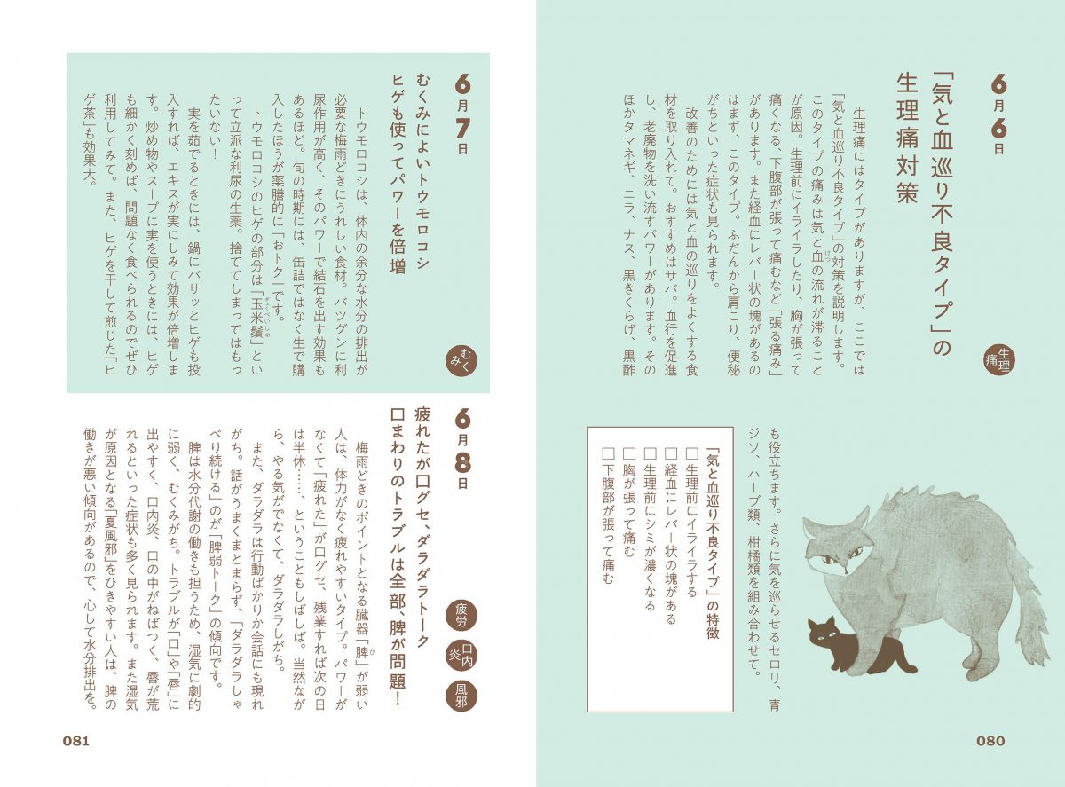 今回ご紹介した薬膳術のように「ゆるく」「カンタンな」薬膳コラムを365日の日付ごとに掲載した書籍が発売中。季節ごとのお悩みや体の不調、健康維持のための疑問に“まいにち”お応えてくれます!体調はよくしたい!けどストイックな健康法は疲れちゃう。という方、必見です。(127w)
