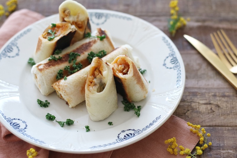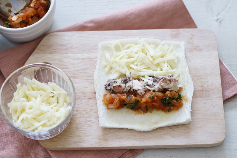 サバ缶×トマトソースの最強タッグ!ロールアップピザトースト