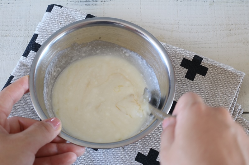 ヨーグルト、はちみつ、レモン汁を混ぜ合わせます。