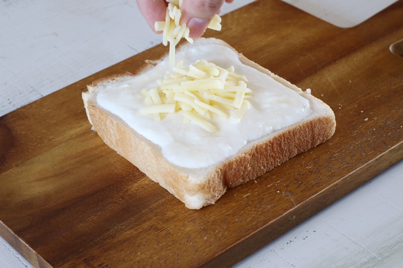 さらにその上からチーズをのせて、トースターでチーズがとろけるまで焼きます。