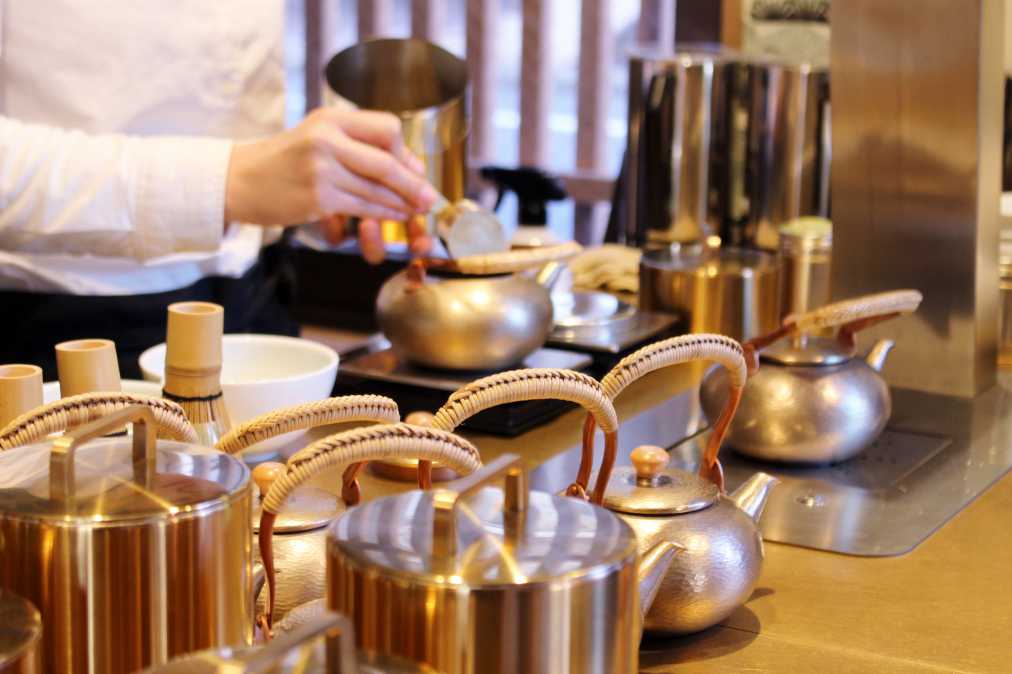 茶筒は京都の老舗「開花堂」、きゅうすは新潟の無形文化財「玉川堂」のものを使うなど、道具にもこだわりがたくさん!