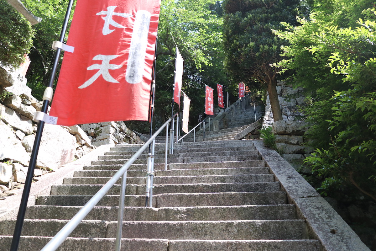 日本三大弁才天のひとつを祀る「竹生島宝厳寺」。本堂へ行くには「祈りの階段」と呼ばれる165段の石段を上らなければなりません。少し急な石段なので、一歩一歩踏みしめながら、心を研ぎ澄ませつつ上りましょう。