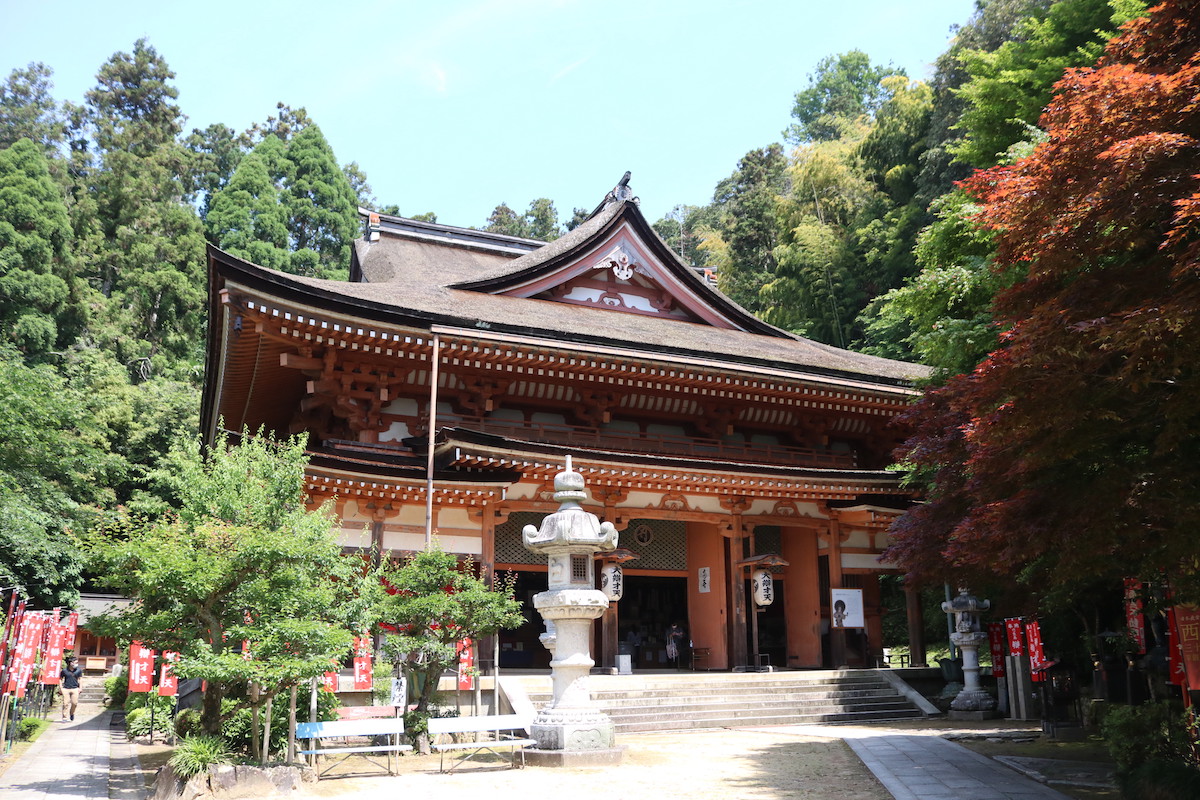 上りきった先に現れるのは、緑に囲まれた朱色の美しい本堂。まわりの雰囲気もとっても厳かで、空気も澄み渡っているよう。