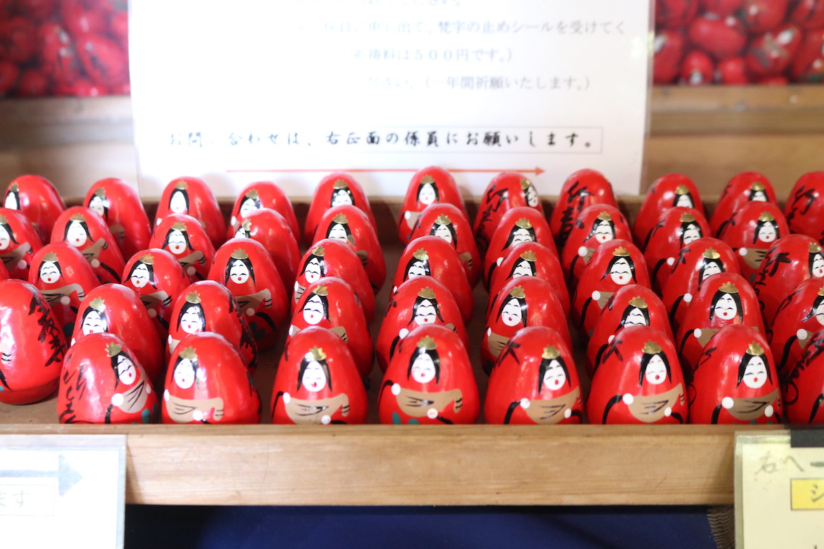 弁才天は人々を苦しみから救い、幸せに導いてくれるといわれる女神様。本堂では、そんな弁天様にお願いごとを聞いてもらえる「弁天様の幸せ願いダルマ」という願掛けが行えます。