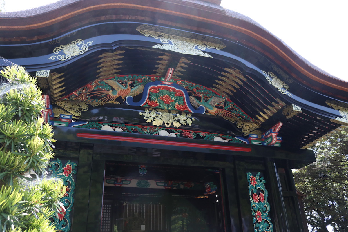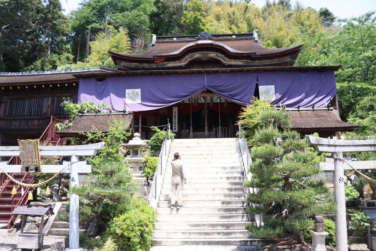 宝厳寺と舟廊下で繋がる「都久夫須麻神社」の本殿は秀吉が寄進した伏見桃山城の束力使殿を移転したもので、こちらも国宝です。山間に広がる優美な本殿に、思わずうっとり。
