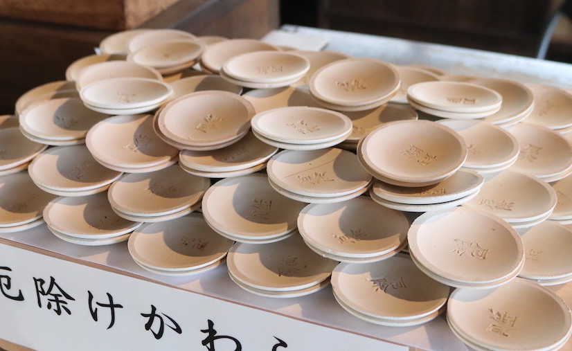 “かわらけ”という土器を2つ授かり、1つには自分の名前、1つにはお願い事を書きましょう。このかわらけを琵琶湖に突き出した鳥居をめがけて投げ、鳥居をくぐれば願い事が成就すると言われています。拝所から鳥居まではかなり距離があるので、しっかり力を込めて投げて。