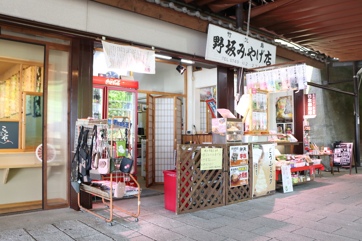拝観や参拝が終わったら、参道のお土産店やカフェでホッとひと息。アイスもなかやソフトクリームでひんやり癒やされつつ、竹生島銘菓や滋賀県の名産品を見繕うのも楽しいです。