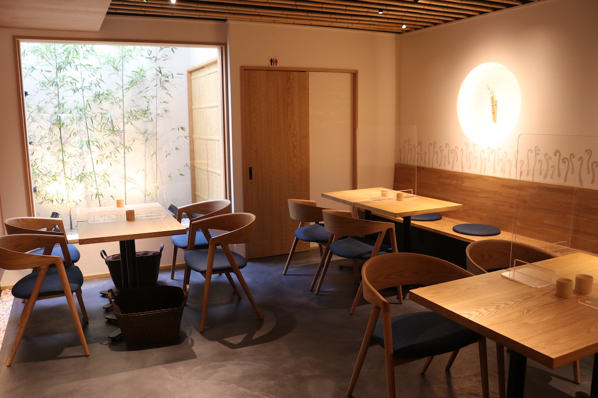 シンプルで上品な空間は、ふっと心を落ち着かせるのにぴったり。近くには枯山水様式の石庭で有名な寺院「龍安寺」もあり、参拝後の休憩に訪れるのもよさそうです。