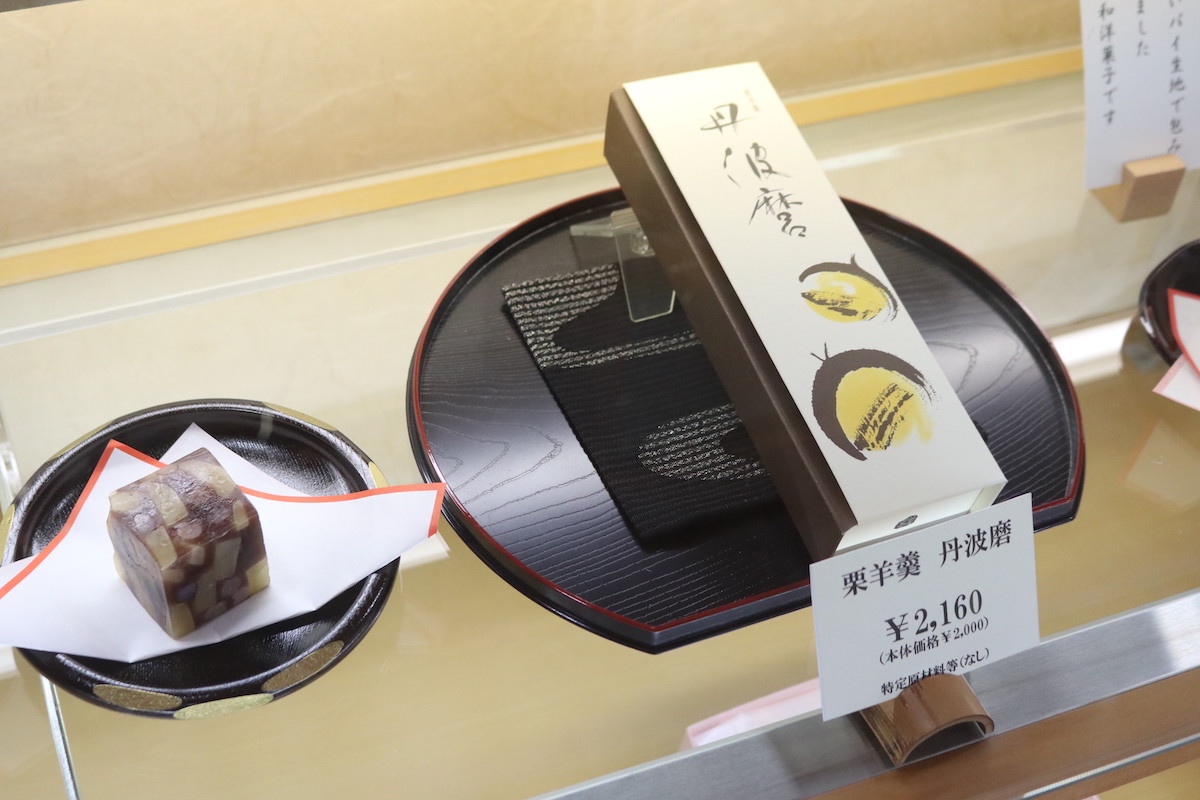 和菓子は、素材を吟味して丁寧に作り上げ、さらりとした後味を残すように考え抜かれたものばかり。中でも栗羊羹「丹波麿」は希少な丹波大納言小豆を贅沢に使用し、ほっくり甘い栗をごろごろと入れた逸品で、贈答品としても人気です。