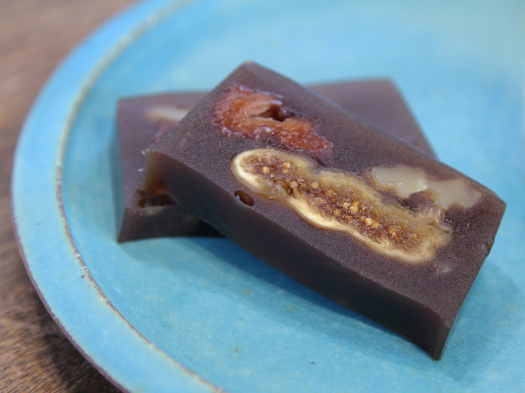 今回ご紹介する「ドライフルーツのようかん」(2160円/1本)は、ドライいちぢくやいちご、くるみなどが練りこまれていて、さまざまなおいしさが楽しめる一品です。