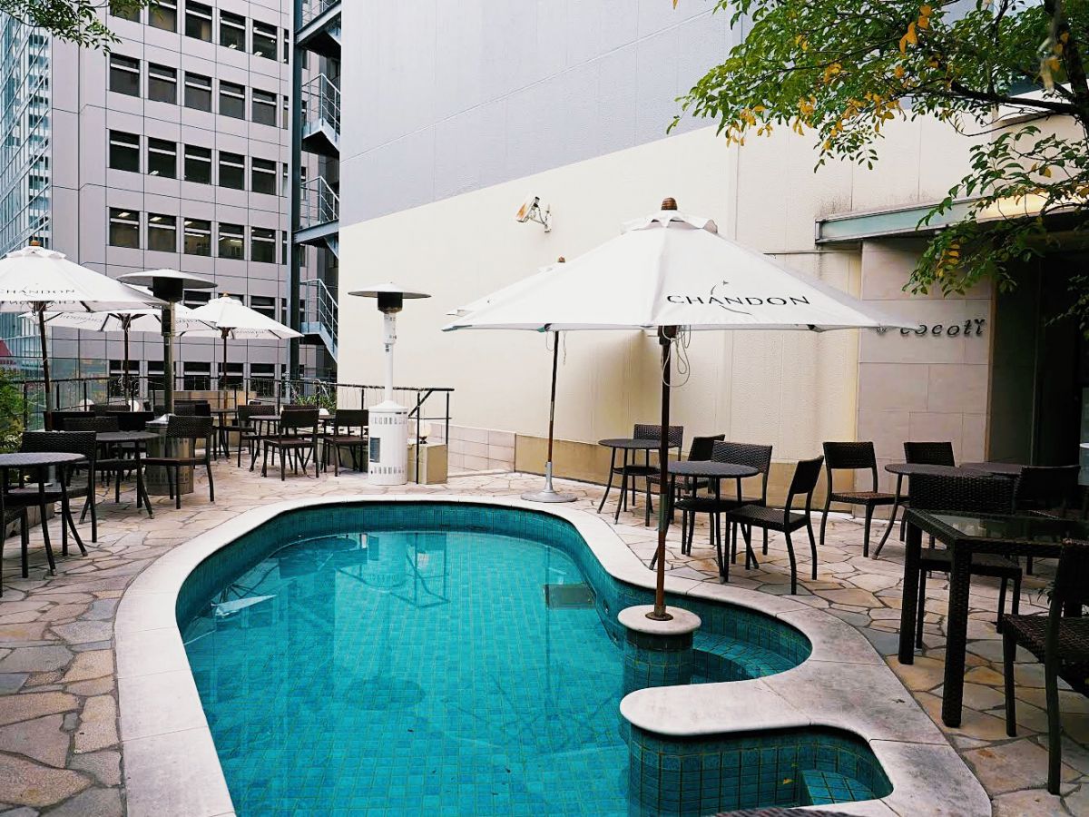 プールをパラソルが取り囲み、リゾートホテルの屋上を思わせるような空間が、こんな都心にあるのです。