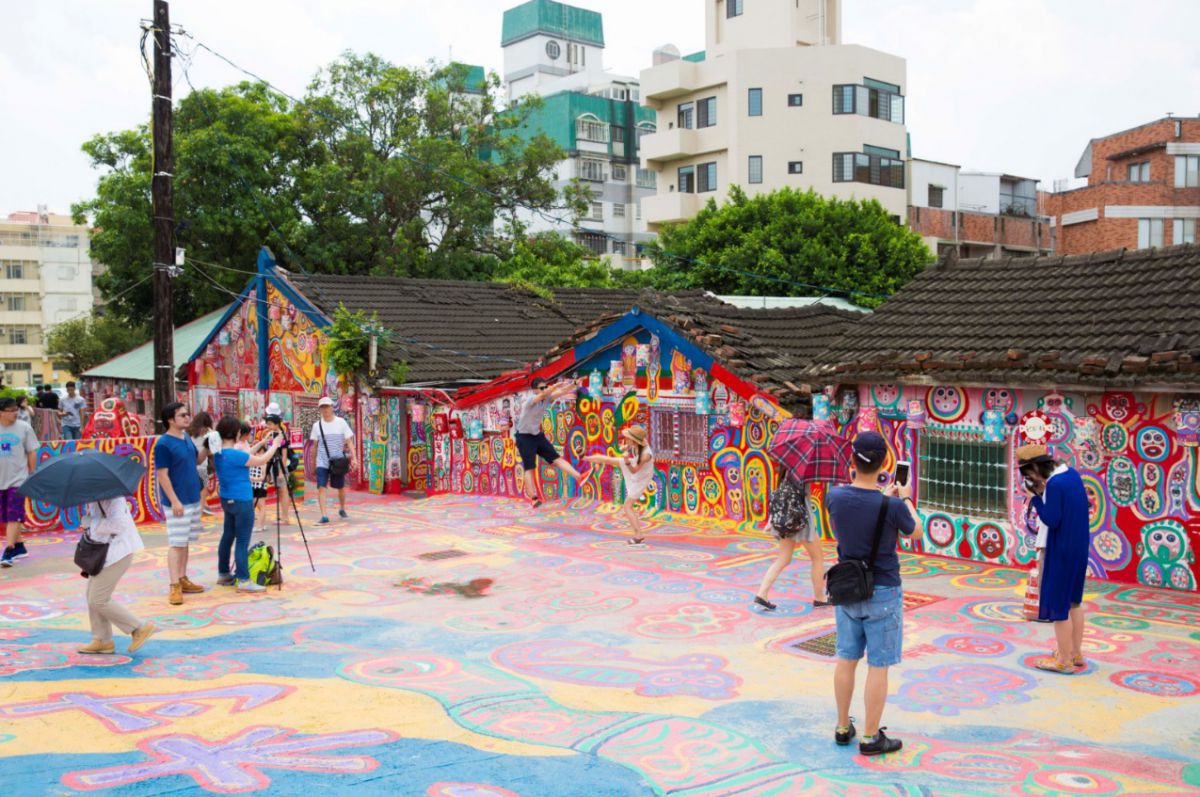 SNS映え抜群の壁画アートで人気の彩虹眷村。壁という壁、そして地面にまで、極彩色の文様やなんとも愛くるしいイラストがびっしりと描かれています。アートをバックにポーズを決めたり、気に入ったイラストに寄ってみたり…写真撮影に大忙しの観光客でいつもにぎわっています。