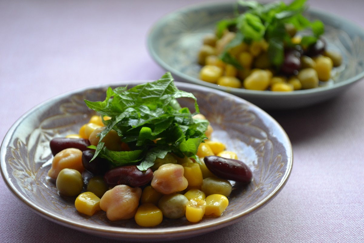 秒速薬膳レシピ!コーンとミックスビーンズの和風サラダ