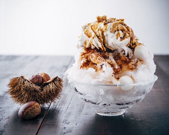 4品目の「和栗クリーム黒蜜きな粉」1500円は、AKOMEYA厨房 銀座本店でしか味わえない限定品。きな粉黒蜜と和栗ならではの、しっとり上品な甘さで素材の良さが際立つ“大人のかき氷“です。