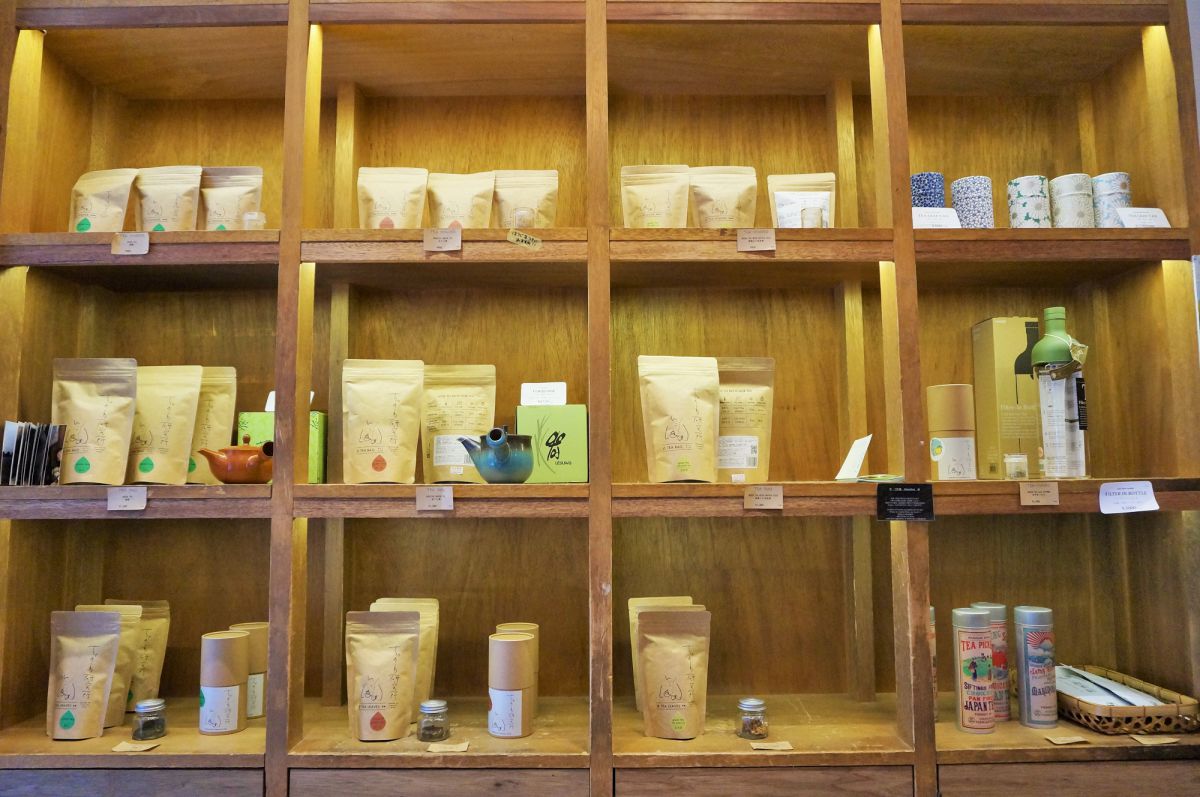 店内では緑茶・ほうじ茶・玄米茶の粉末やティーバッグ、茶葉を販売。