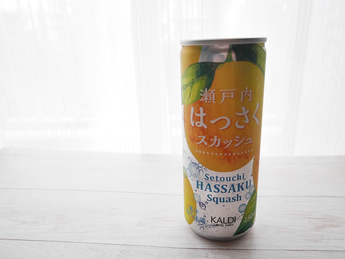 暑い夏の日に飲みたいのが「瀬戸内はっさくスカッシュ」108円(税込)。シュワシュワ炭酸が喉の渇きをいやしてくれます。