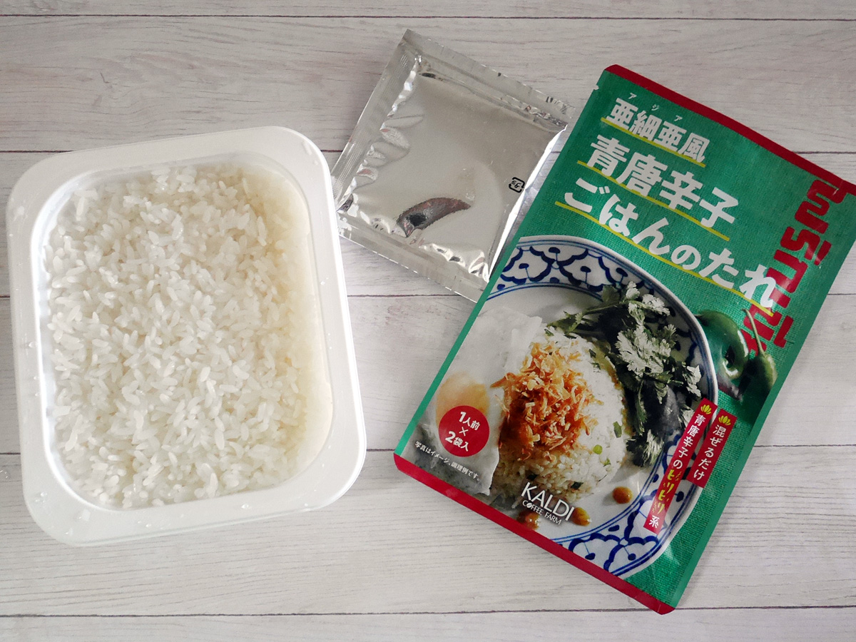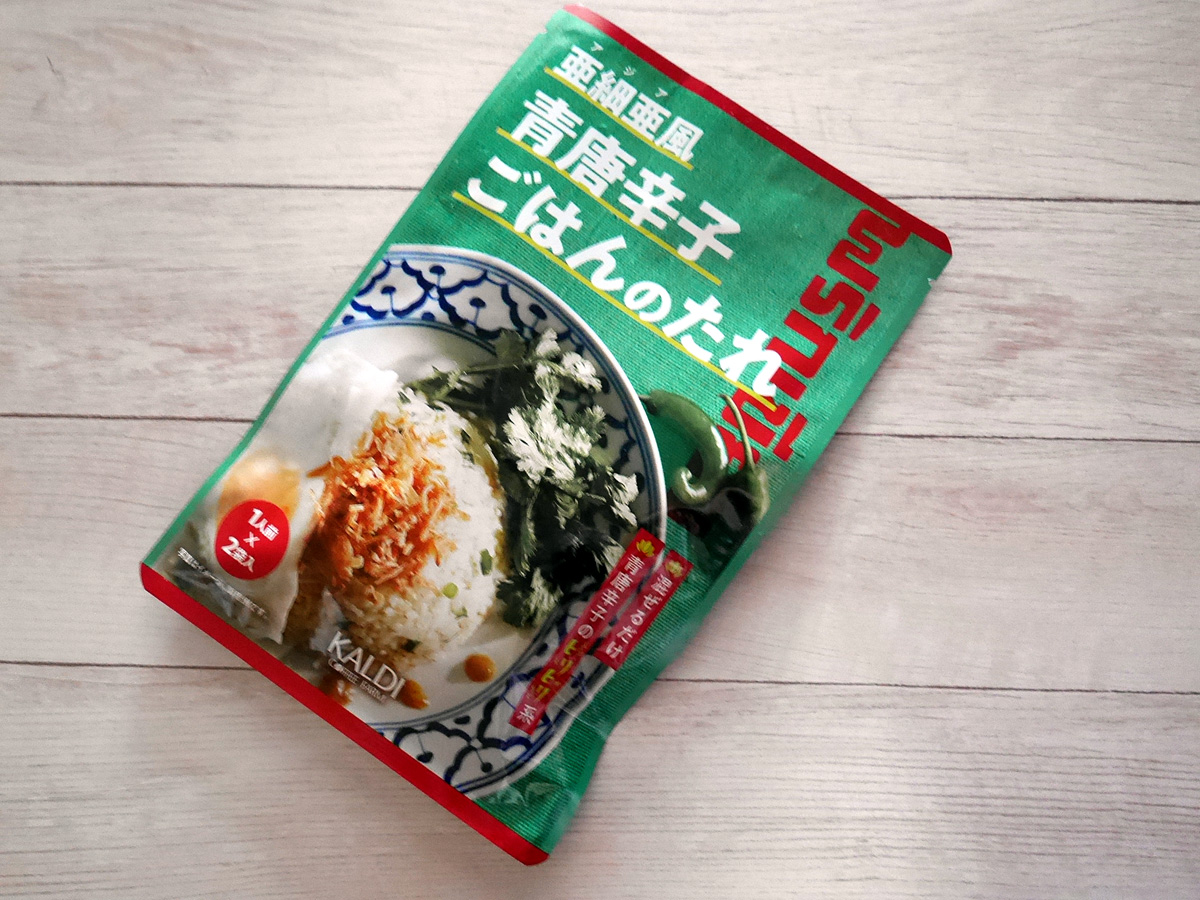 店頭で見かけても、「青唐辛子」のインパクトから買う勇気がなかったという人も多そうな、カルディオリジナル商品の「亜細亜風青唐辛子ごはんのたれ」177円(税込)。