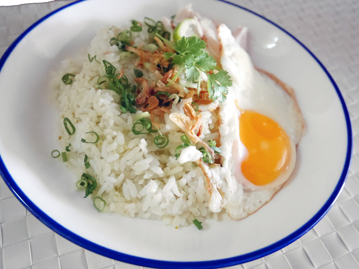 ご飯には特に具材が入っていないのでフライドオニオンをトッピングすると、食感もアップ!