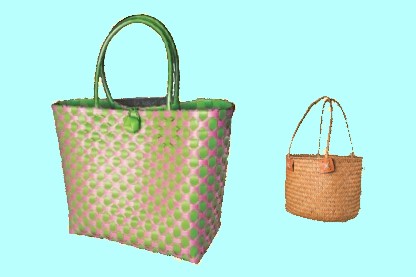 写真右の色づかいがかわいいプラバッグはNT$300。写真右の台湾製籠バッグ(NT$380)はどんなコーデにもマッチしやすく、帰国後もヘビロテ確定です!