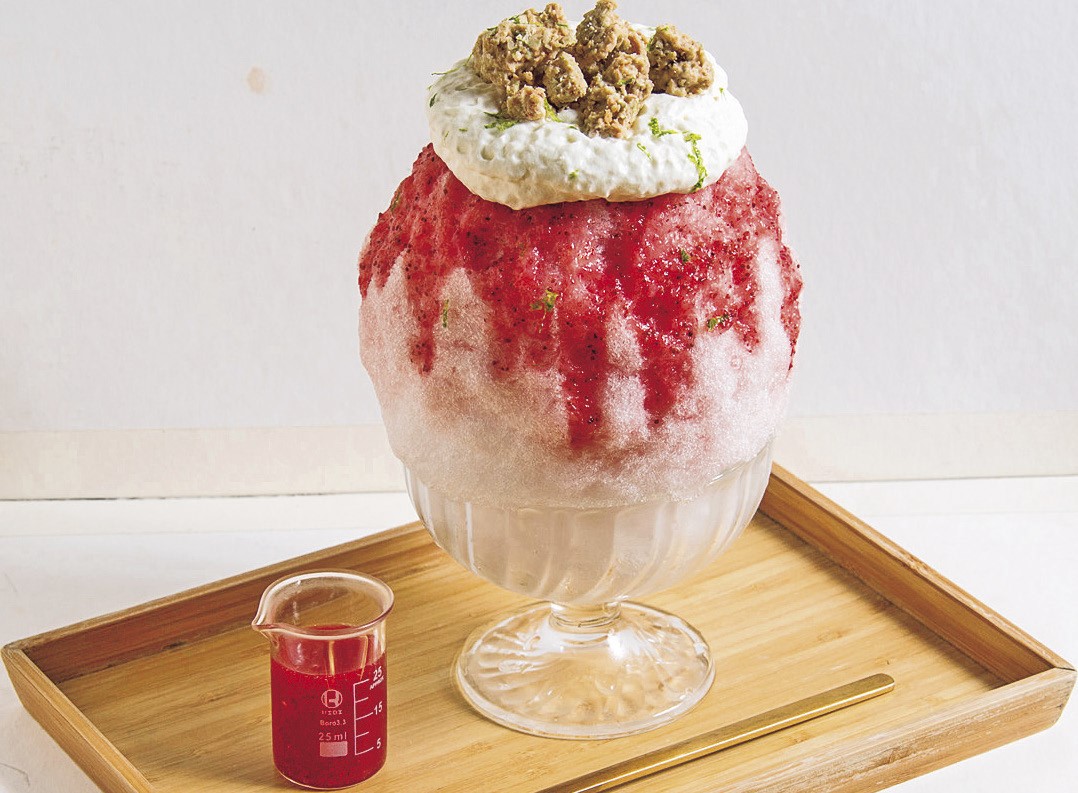 古亭駅に移動したら、台湾名物のかき氷を!台北には、定番のマンゴーだけでなく、個性派かき氷の名店がいっぱいあるんです。「Kakigori Toshihiko」は、日本の製菓学校を卒業した台湾人パティシエがオーナーのかき氷店。写真の椰子草苺(NT$250)は、フレッシュなイチゴソースにココナッツを合わせたさわやかな味が特徴です!