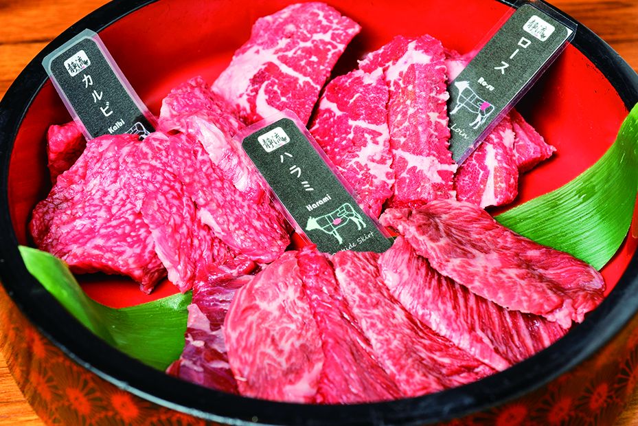ステーキとは違ったお肉が食べたい時には、焼肉と鍋のお店「静流(しずる)」へ。焼肉3種盛り合わせは$38.00~。