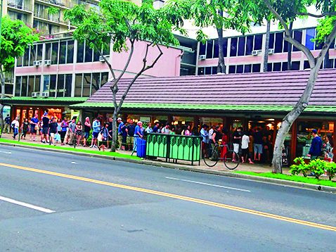 開店前から行列ができる盛況ぶり/丸亀製麺(ワイキキ店)