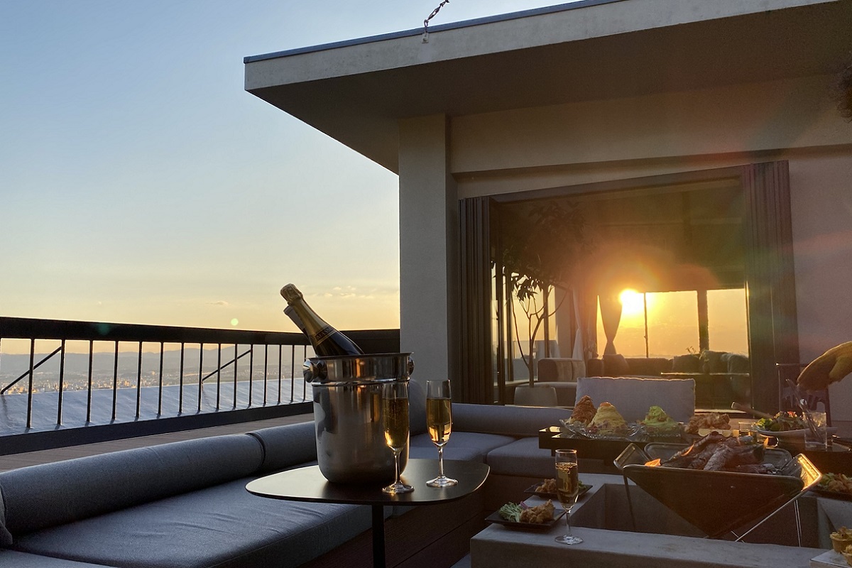 極め付けは、写真のペントスイート。この絶景。絶景の中に部屋があるといっていいほど、広々とした視界。