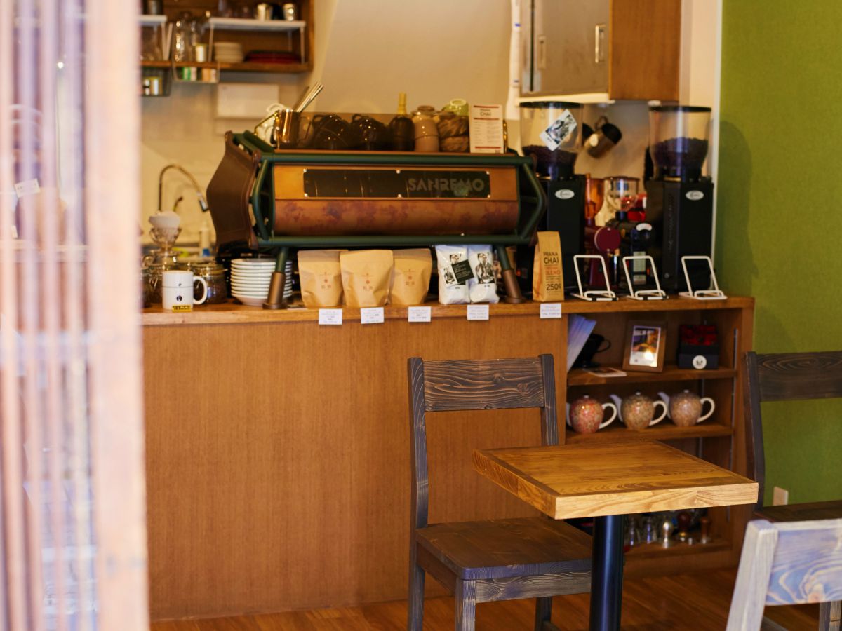店内は、木のぬくもりあふれる和モダンテイスト。8席のこぢんまりとした空間ですが、オーナーの淹れる至極の一杯を味わいながら、ゆるりとした時間を過ごすには、これがまたちょうどいいサイズ感なんです。
