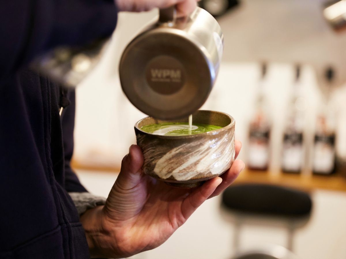 一口にラテアートといっても、抹茶とコーヒーでは勝手がまったく違うそうで、抹茶のラテアートでは、ミルクと抹茶の比率がポイントになるのだとか。