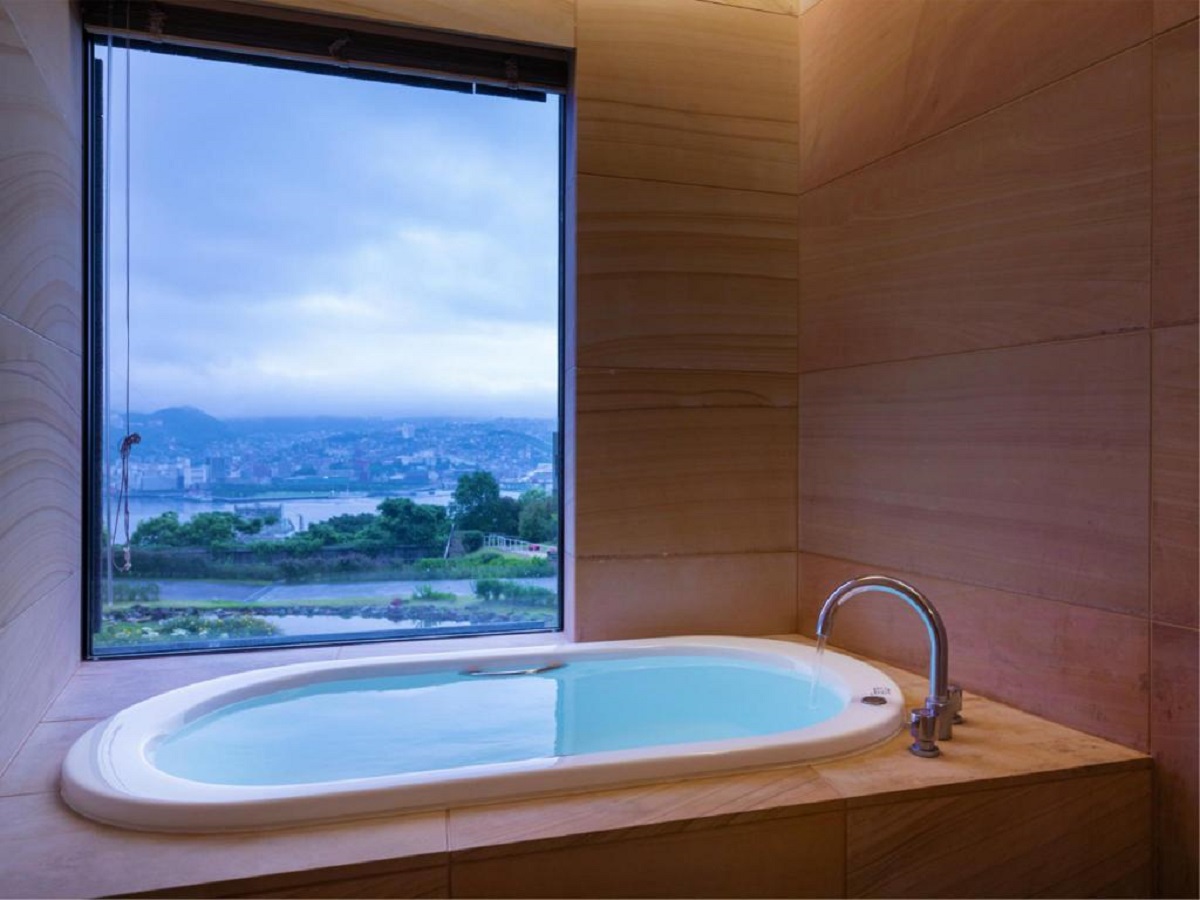 施設には貸切風呂もありますが、客室バスルームから望む長崎湾の絶景は格別です!
