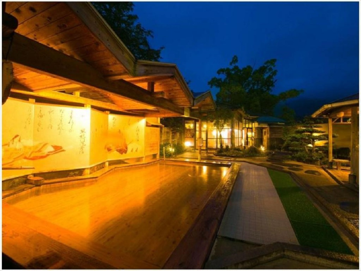 「三十六歌仙の湯」は桧づくりの大きな露天風呂。「かぐや姫の湯」からは、名産の竹のほかに、春は桜、夏は新緑、秋は紅葉、冬は雪景色を湯舟から眺めることも。四季の移ろいを感じられる露天風呂で、生まれ変わったみたいにリフレッシュできそう。