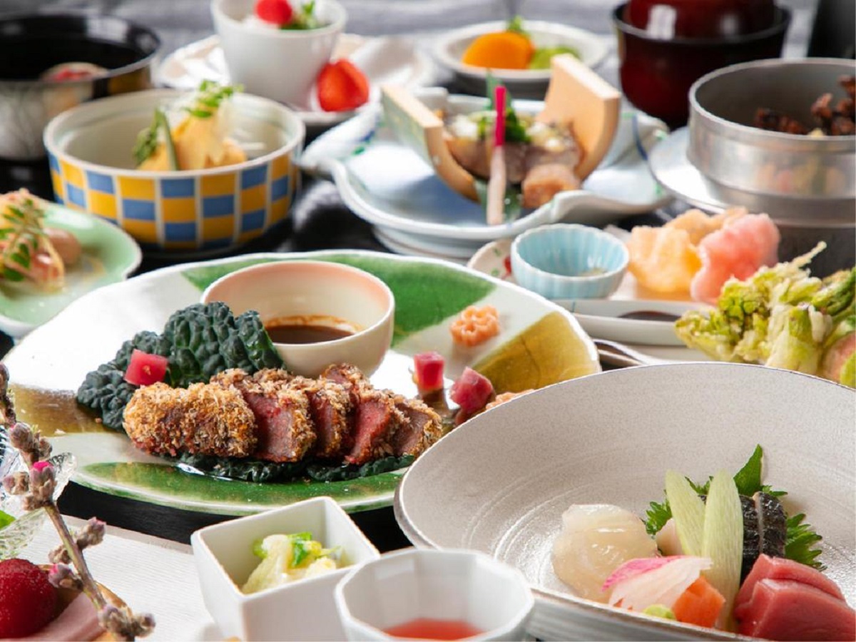 夕食には、美味しいのはもちろん、体にも良い野菜と山の幸がコラボレーションした山・川・海の“旬の味わい”が堪能できる会席料理がふるまわれます。