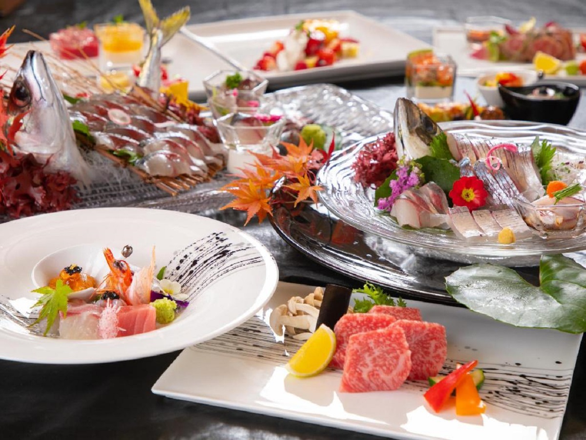 提供される料理は、鹿児島県産の旬の食材を中心に手間暇かけてつくられた逸品ばかり。鹿児島県産黒毛和牛や、霧島高原純粋黒豚、近海で水揚げされた魚などを、完全プライベートな個室ダイニングで、じっくり味わうことができます。