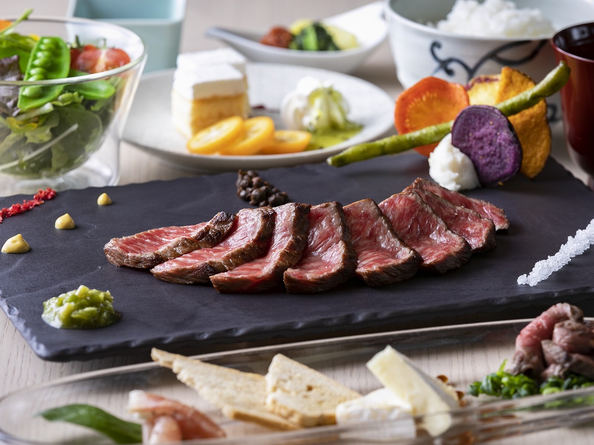特別和洋室では、夕食はお部屋で提供されます。周りを気にすることなくゆっくりと楽しめますね。世界農業遺産に登録された高千穂の棚田米をはじめ、数々の地元のこだわり抜いた食材を使ったメニューが堪能できますよ。