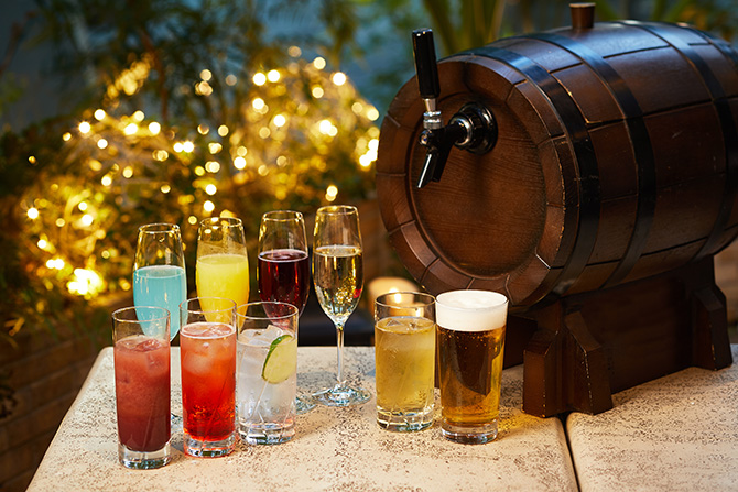 ドリンクは、ソムリエが厳選したワインや、ビール、バーテンダーこだわりの夏のカクテルが別途料金で楽しめます。さらに、食事のみプランに+3000円すれば飲み放題の「フリーフロードリンク付プラン」にもできます。