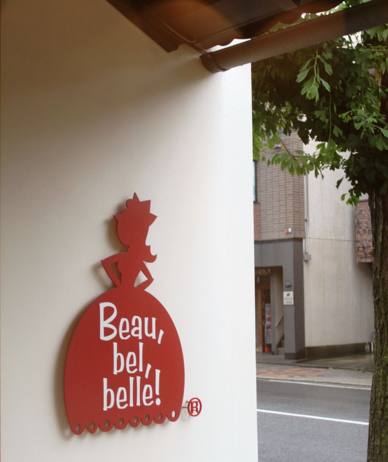 店名の「Beau,bel,belle(ボゥ・ベル・ベル)」とは、フランス語で「優雅な」「上品な」という意味。凛と上を向く女性を描いたロゴマークで親しまれています。店内奥のオリジナルグッズコーナーも、ぜひチェックしてみて。