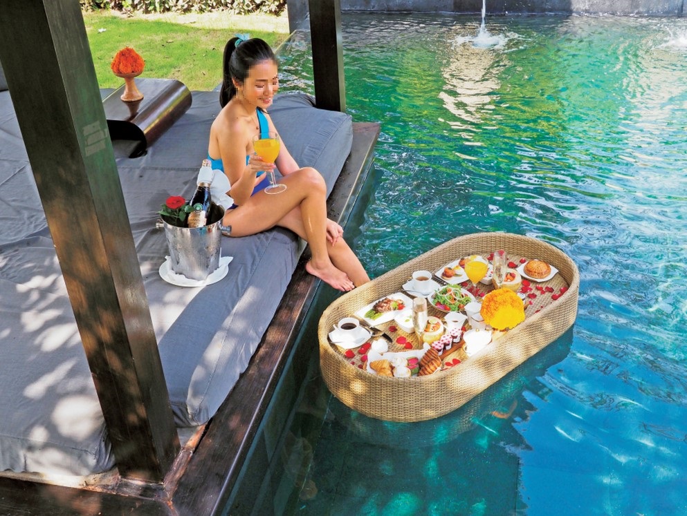 バリで今一番おすすめの朝活は「フローティングブレクファスト」。プールに浮かべて食べる朝食のことで、SNSでもよく見かけるのではないでしょうか。人気ホテル「アヤナ リゾート&スパ バリ」では9~15時まで、宿泊者限定で1人Rp. 160万(税別/2人から予約可)で体験できます!