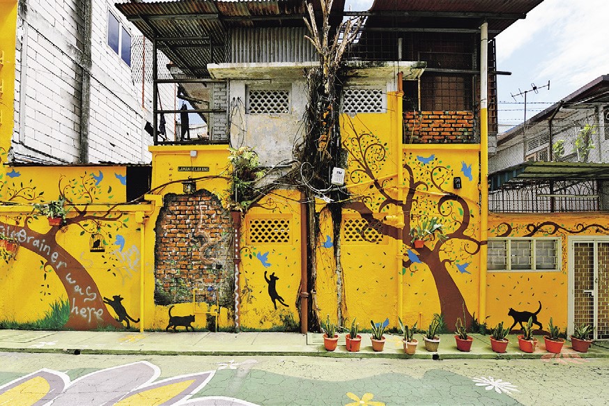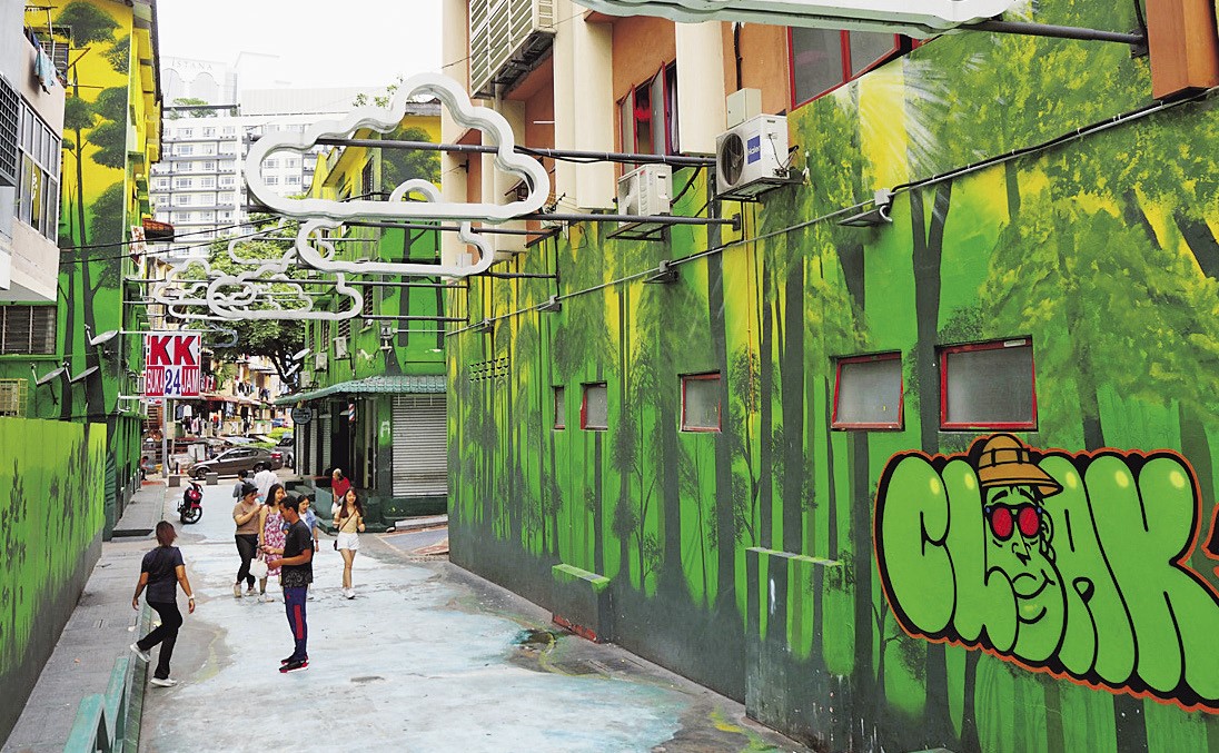 ブキッ・ビンタン通りの北側の路地は、現在ウォール・アートのスポットとして人気沸騰中!壁一面に描かれたウォールアートだけでなく、足元や頭上のアートも要チェックです。