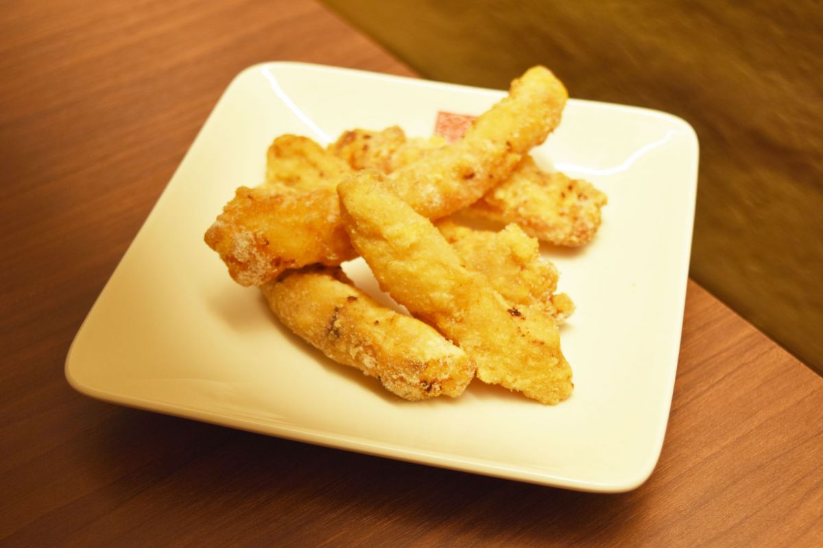 「カリカリ黄金チキン」(650円)。サクサクに揚げたチキンにガーリック風味の特製パウダーがたっぷりかかっています。衣にはタピオカ粉を使用しているため、もちもち&サクサク。台湾で食べたチキンの味を思い出しました……!手が止まらなくなること間違いなしです。