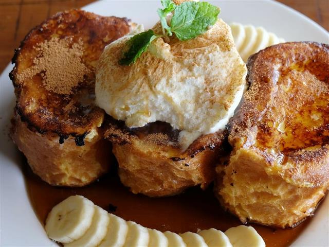 シナモンがアクセント!海辺のカフェでいただくフレンチトースト