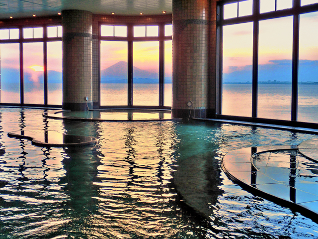 富士山を眺めながらゆらゆらと!スパで泳いで温泉で癒されよう