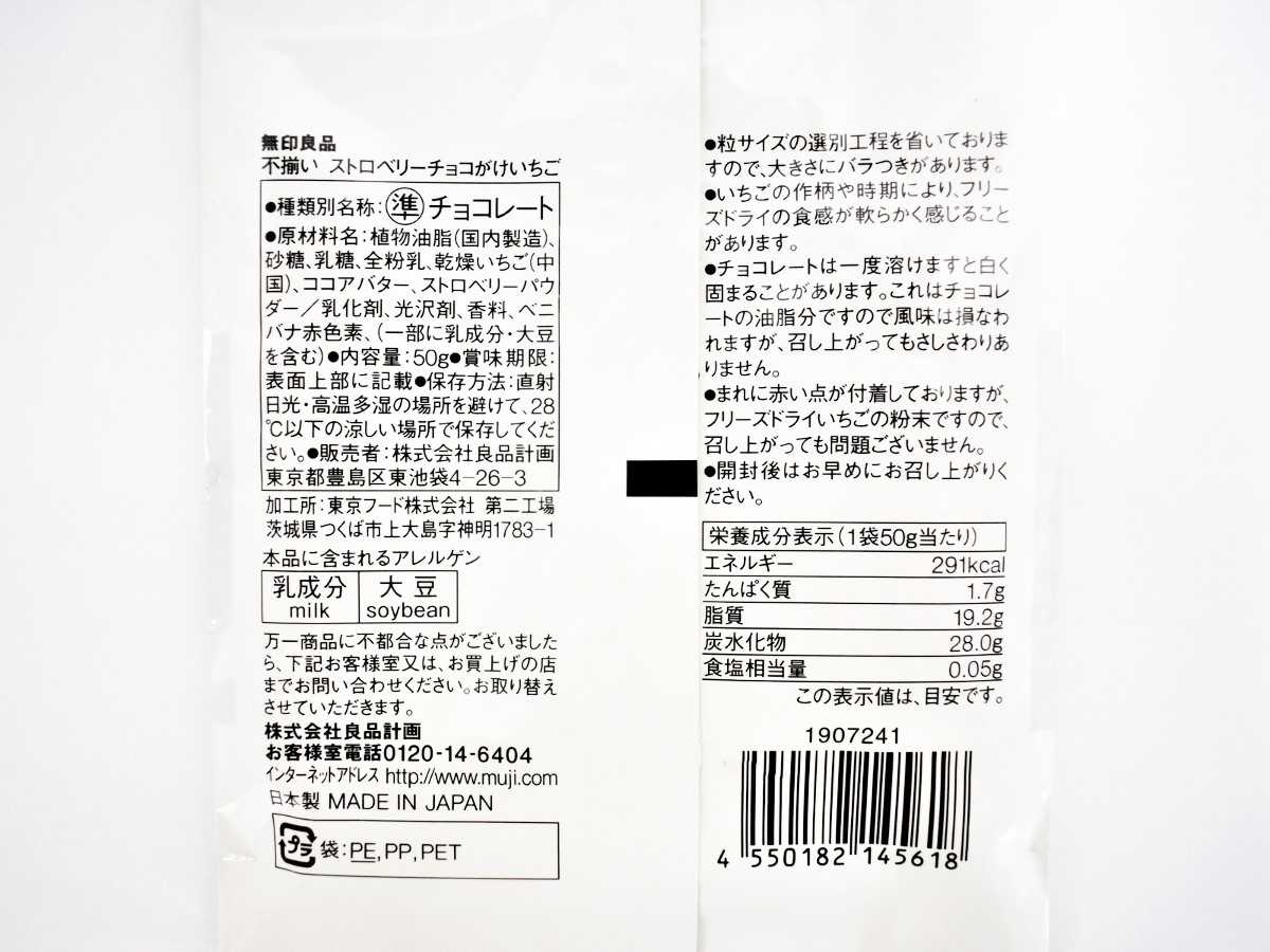 「不揃い ストロベリーチョコがけいちご 50g」(無印良品)