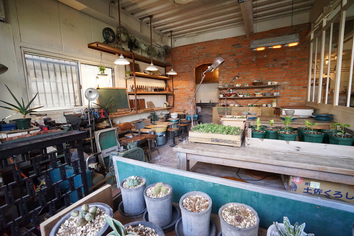 「森森舎(しんしんしゃ)」は、陶芸教室を併設したカフェ。お店の前にはその名の通り、“森”のように緑が生い茂り、健やかな雰囲気に満ちています。