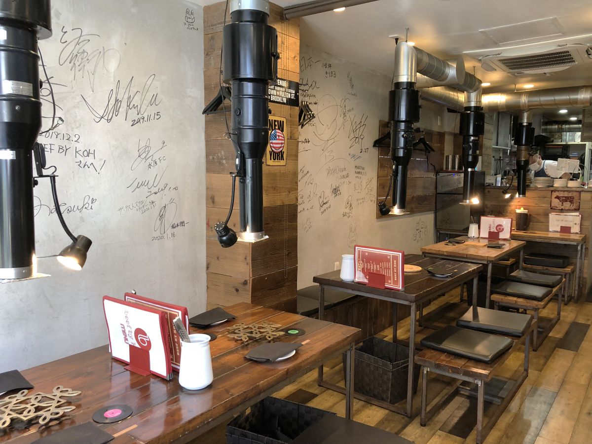 店内はまるでNYのブルックリンにあるカフェのよう。内装はブルックリンのヴィンテージ感をリアルに出すために、あえて業者に頼まず、なんとオーナー自ら手がけたというこだわりっぷり!本場NYに来たかのような雰囲気が味わえます。