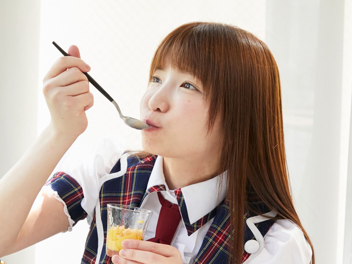 もえあずおすすめ2品目は「ミニパフェ」です。季節によって内容がかわる、このミニパフェ。今回ご紹介するのは、夏バージョンのマンゴープリン&パッションフルーツです。ちなみに秋は抹茶orチョコレート、冬には季節のフルーツを使ったパフェが楽しめるそうです!