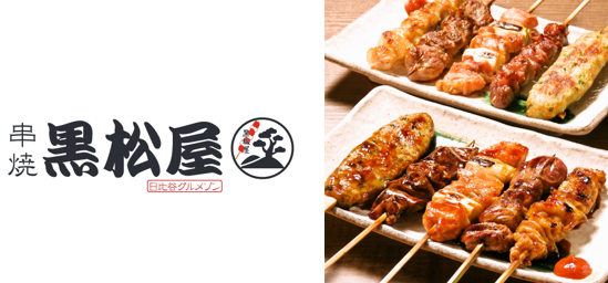 「串焼 黒松屋」は、こだわりの上州軍鶏、プラチナポークなどの串焼と常時20種類の地酒とワインが楽しめます。