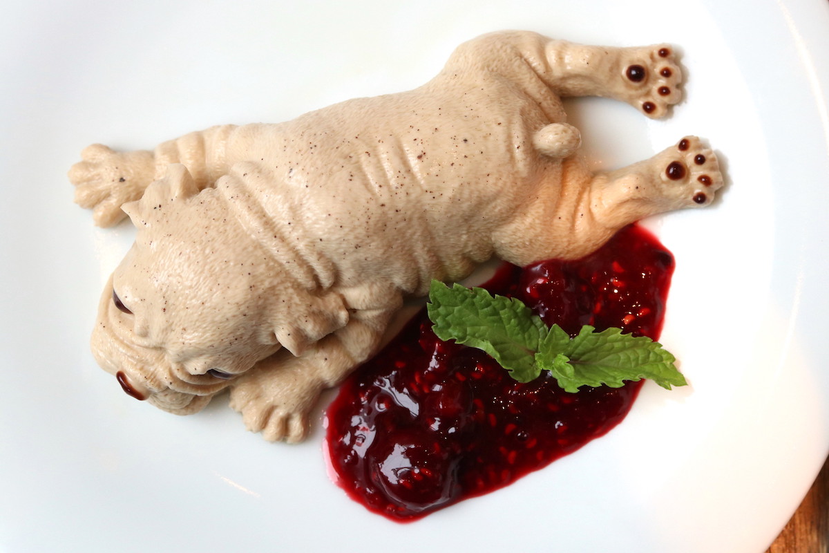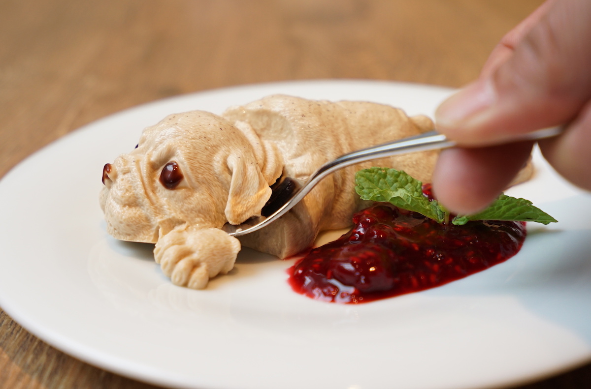 ここ最近「PEARLS」に新登場しInstagramでも続々と投稿されているのが、フレンチブルドッグを象ったスイーツ「ワンナコッタ」。お皿の上で脱力して寝そべっているような、この愛らしいシルエットにため息がもれます。