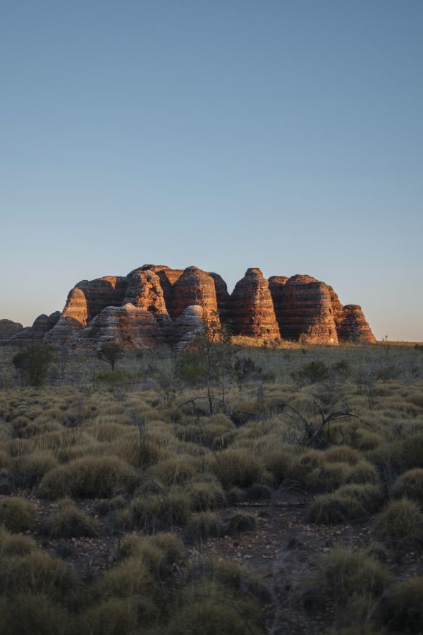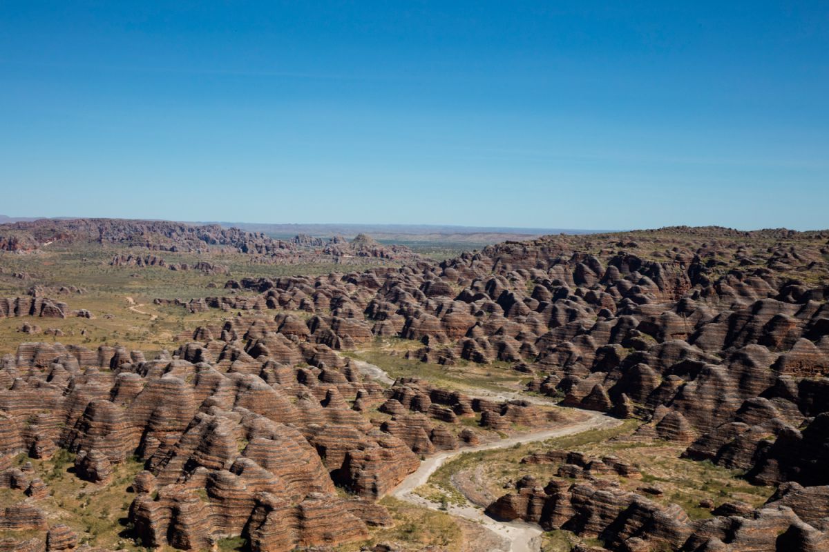 ハチの巣のような奇岩が山脈状に連なるバングルバングルは、西オーストラリアの北東部、キンバリー地域に位置するパヌルル国立公園にあります。世界遺産に登録されるこの奇岩群は、1983年に映像の撮影クルーにより世界に紹介されるまで、先住民族などわずかな人にしか知られていない秘境でした!オレンジと茶色の縞模様を持つドーム型の砂岩は、約3億5千万年前から堆積・隆起し、2千万年をかけて侵食されてできたといわれています。