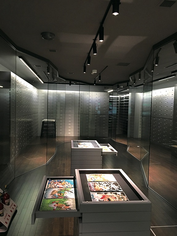 家屋内にある豪奢な「内蔵」をモチーフにした原画の収蔵庫では、原画の保存作業や情報記録などを、バックヤードツアーのように楽しめます。原画をじっくり見られる「ヒキダシステム」があって、一部の作品は、現物を見ることもできます。